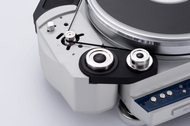 Il sistema di cuscinetto ad aria rappresenta l’elemento tecnico più distintivo di questo giradischi hi-end. Anziché affidarsi a un cuscinetto meccanico tradizionale, il piatto ruota su un film d’aria che lo separa fisicamente dall’asse portante, eliminando alla radice l’attrito e le microrisonanze che questo normalmente introduce. È una soluzione mutuata direttamente dai modelli superiori della serie e che, in condizioni ottimali, abbassa sensibilmente il rumore di fondo del sistema.