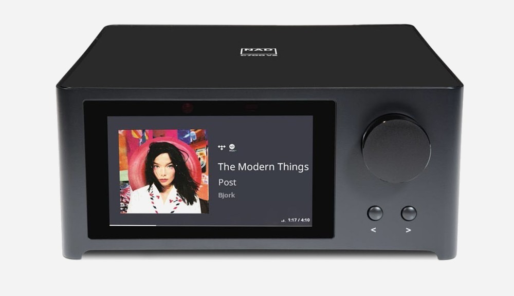L’amplificazione digitale in classe D, supportata dalla tecnologia proprietaria HybridDigital UcD, è in grado di erogare 2 x 80W su un carico di 8 Ohm (2 x 100W su 4 Ohm), con il circuito dell’amplificatore alloggiato in un solido corpo in alluminio che funge da efficace dissipatore di calore. Il pannello frontale in vetro ospita ancora l’ampio display LCD a colori da 5″ (12,7 cm di diagonale), mentre i controlli avvengono tramite l’app BluOS, comandi vocali (Amazon Alexa o Apple Siri) o il telecomando in dotazione.
