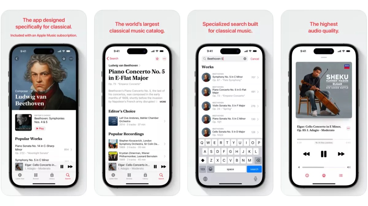 Considerato che questi oltre 5 milioni di brani di musica classica sono gli stessi già disponibili nell’attuale catalogo di Apple Music (e con la stessa qualità audio), viene da chiedersi il perché di un’app separata. Essenzialmente per una questione di ricerca. Quando si parla infatti di musica classica, trovare il brano, il concerto o la sinfonia desiderata può essere più complesso del previsto tra i diversi direttori, orchestre e versioni disponibili per ogni opera.