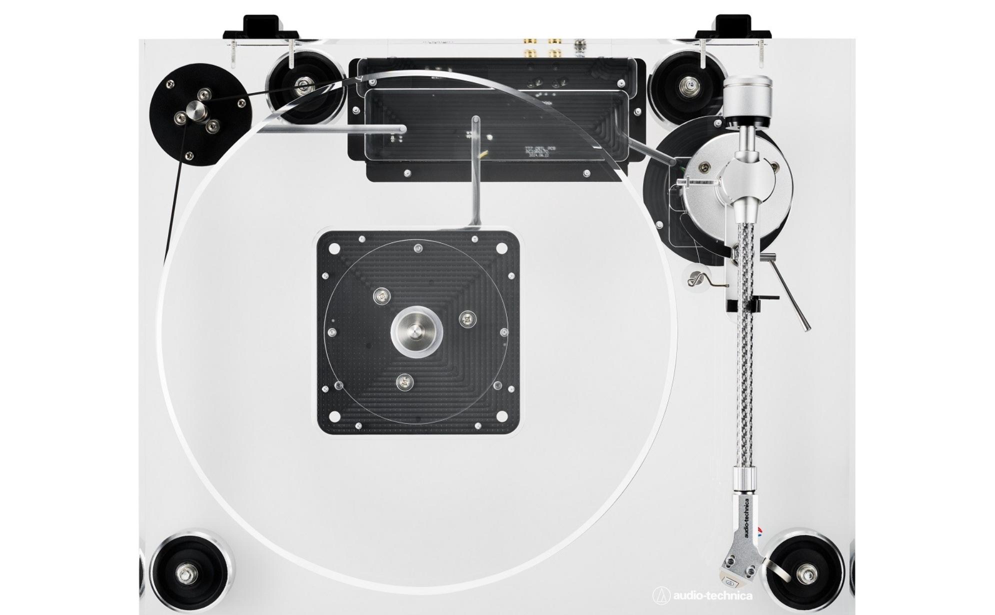Realizzato in acrilico trasparente ad alta densità, l’AT-LPA2 vanta un plinto spesso 30 mm e un piatto da 20 mm, entrambi in acrilico, per un peso complessivo di 8,4 kg. Secondo Audio-Technica questo design, oltre a offrire un indubbio colpo d’occhio, assicura anche un eccellente controllo delle risonanze, riducendo al minimo le vibrazioni indesiderate e favorendo una riproduzione dal dettaglio sorprendente.