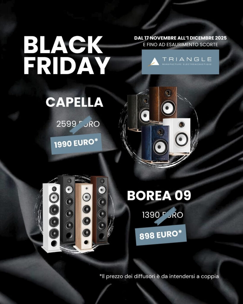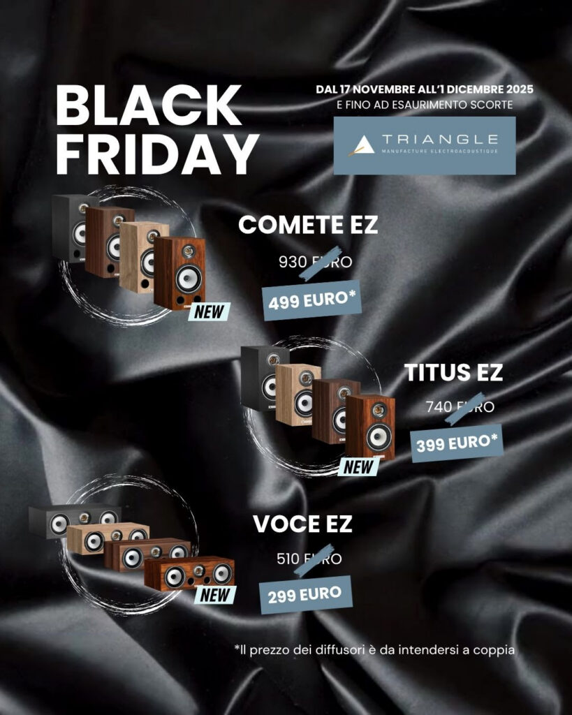 Il Black Friday 2025 entra nel vivo e quest’anno porta con sé una sorpresa importante per gli appassionati di audio: Triangle, storico marchio francese specializzato in diffusori Hi-Fi, lancia una campagna di sconti che durerà dal 20 novembre all’1 dicembre 2025.