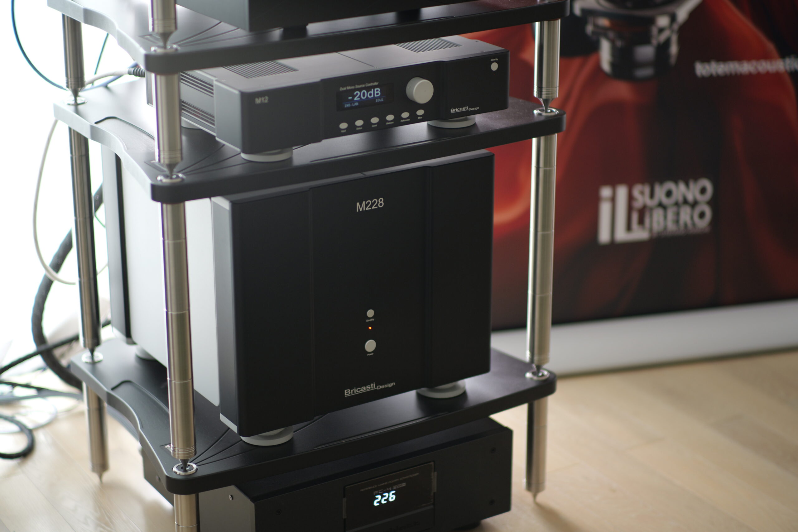 Non potevamo non fare un salto nella sala M2Tech/Lahò ben descritta dai due rappresentanti dei brand: Marco Manunta e Emanuele Vangeri. Una sala tutta italiana che non sfigurava di certo al confronto con le altre. Nella nostra video intervista Marco ed Emanuele ci hanno spiegato il setup e le loro caratteristiche principali. Dal momento che le Totem Acoustic Bison Tower ci erano piaciute così tanto non potevamo non ascoltare le sorelle più grandi di casa Totem ossia le Element V2 accompagnate da una potenza di fuoco non indifferente del marchio americano Bricasti Design. Per chi non lo sapesse la sala era quella di Audio Graffiti Mantova, il cui titolare Stefano Marchi è il distributore italiano Bircasti Design nonché brand amabassador di Totem Acoustic.