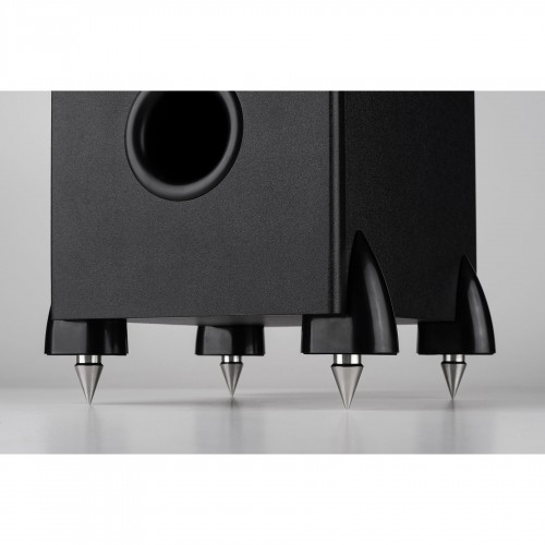 Seguono anche qui supporti di sostegno e piedini di isolamento il cui scopo, oltre che portare alla giusta quota l’elettroacustica, è quello di isolare per quanto possibile – oppure accoppiare a mo’ di massa infinita – il diffusore dalla superficie ove si trova, sempre con lo scopo di evitare risonanze aggiuntive che possano sporcare il suono da questo emesso.