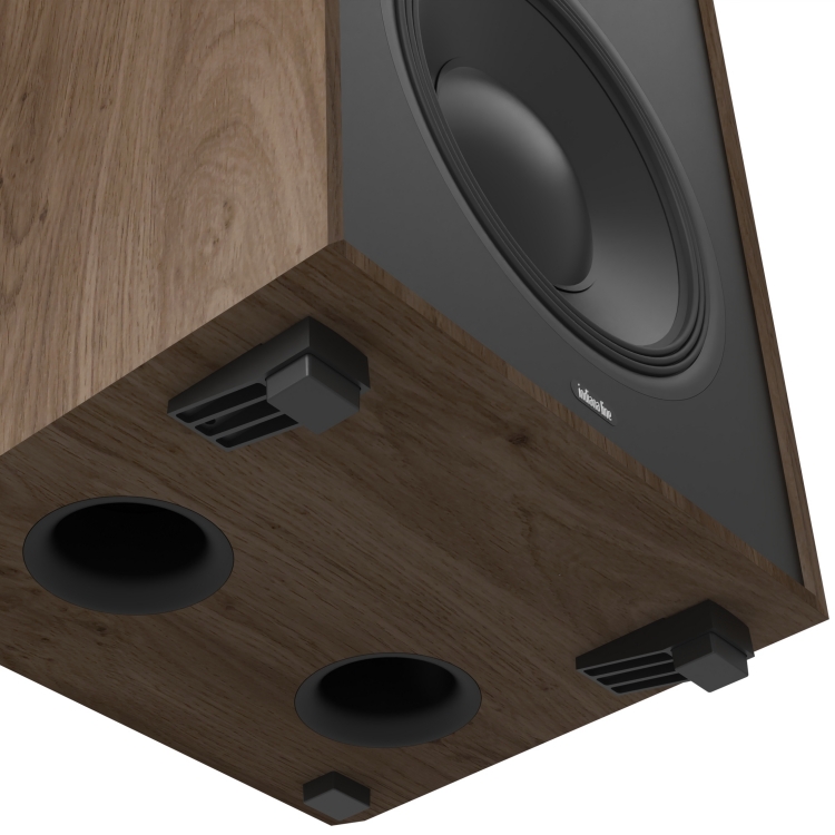All’interno del diffusore sono, altresì, presenti alcuni rinforzi atti al contenimento delle vibrazioni spurie denominati DIRS (Damped Inner Reinforcement System) cui si aggiungono i quattro “piedoni” in morbida gomma posti alla base del cabinet che si occupano del disaccoppiamento del diffusore dal pavimento evitando, al contempo, sia l’occlusione dei condotti del sistema reflex che la giusta inclinazione al fine di ottenere una scena acustica di altezza opportuna.