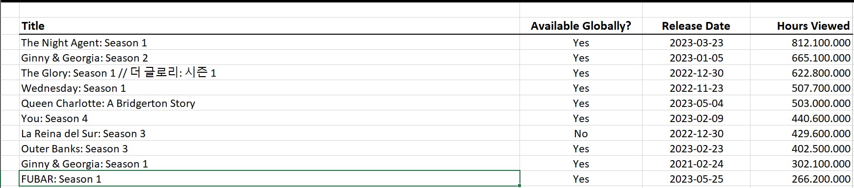 Il report completo riporta oltre 18.000 titoli con relativo conteggio di ore viste, ma trattandosi di un file Excel quasi infinito riportiamo qui sotto la lista dei primi 10 e, come potete vedere, non sono mancate le sorprese.