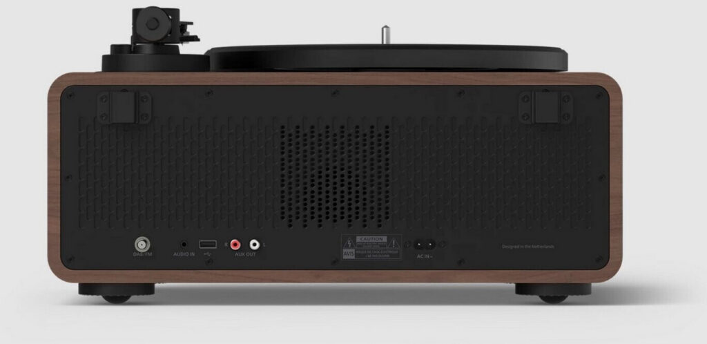 Il suddetto sistema si compone di una radio DAB+, una di tipo FM, può fungere da Streamer, ha connettività Bluetooth, un giradischi (33/45 rpm) ed il sistema di amplificazione in classe D – differenziato per la parte digitale, maggiormente potente con i sui 120 watt (240 di picco) e quella analogica, la cui potenza è di 60 watt (120 di picco) – probabilmente per evitare risonanze eccessive in grado di disturbare la riproduzione del vinile; trattandosi di un cabinet unico, sebbene siano state certamente messe in atto contromisure, il problema vibrazioni resta comunque presente.