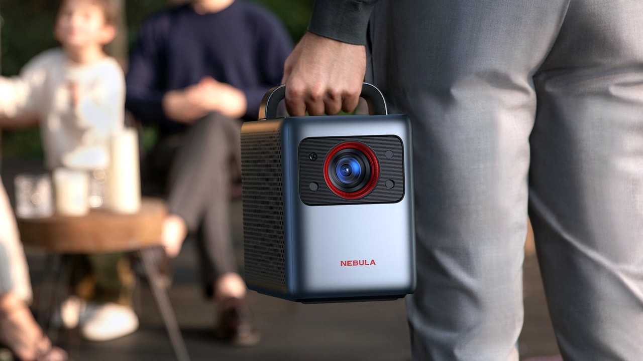 Il Nebula X1 è il proiettore portatile di Anker più avanzato di sempre. Si tratta di un modello DLP 4K vobulato da 2499 euro con una luminosità molto elevata (3.500 ansi lumen), che lo rende adatto anche a un utilizzo in esterni, e con supporto per Dolby Vision, un plus non da poco per un proiettore di questo tipo. Grazie a un gimbal interno, il proiettore può essere posizionato su un tavolo, una mensola o persino a terra, inclinando l’ottica fino a 25 gradi per allinearsi correttamente con la superficie di proiezione. L’obiettivo con zoom ottico consente inoltre di ottenere un’immagine fino a 200 pollici da una distanza tra i 4 e i 6,7 metri, senza sacrificare qualità.