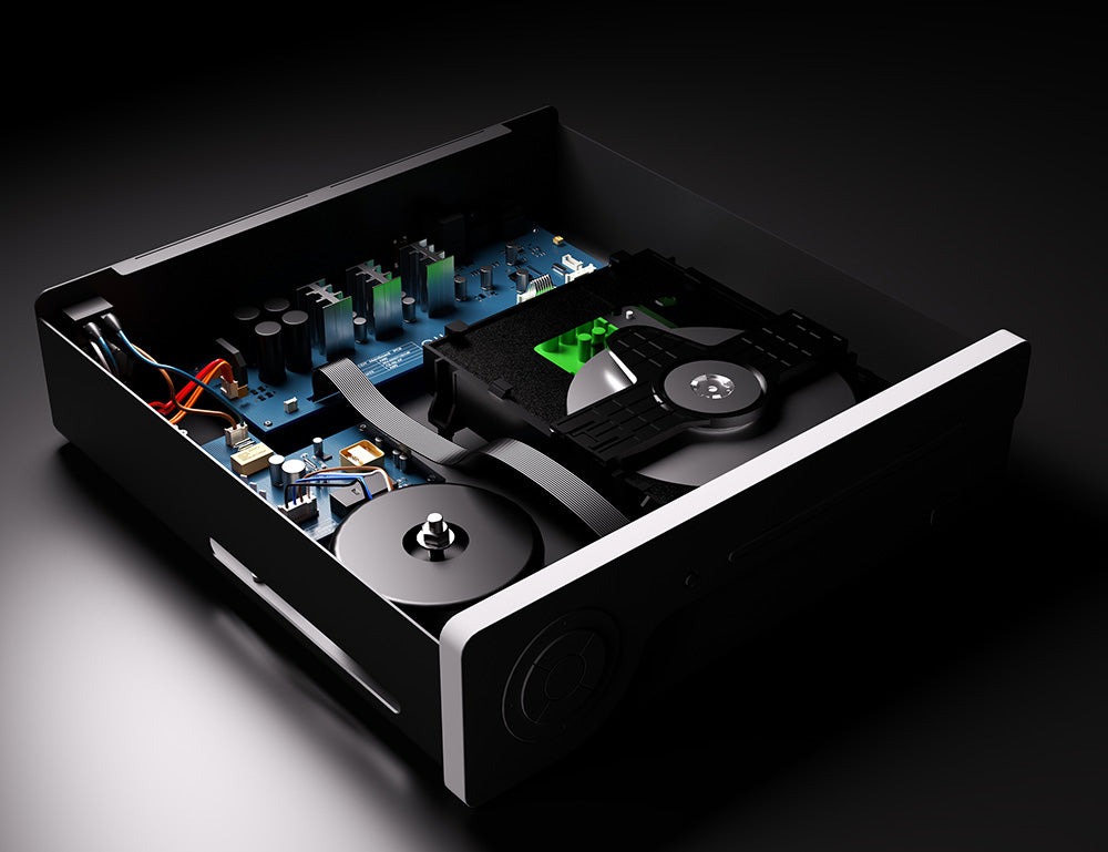 La gestione del disco è affidata a un meccanismo proprietario controllato da un servo di nuova generazione pensato per incrementare l’accuratezza di lettura. Ogni aspetto del gruppo laser e del sistema di controllo è stato inoltre ottimizzato per minimizzare errori, jitter e distorsioni, elementi critici quando si tratta di estrarre dati digitali da un supporto ottico.