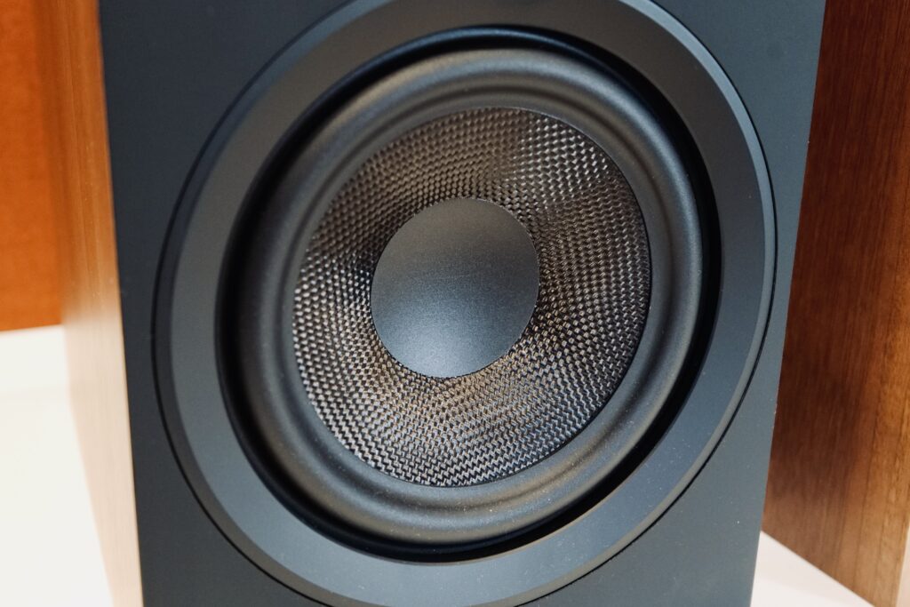 Per le frequenze medio-basse, le Elac Debut DB63 utilizzano un woofer da 6,5 pollici in fibra aramidica intrecciata. Questo materiale è stato scelto per via delle sue proprietà intrinseche. Rispetto alle versioni precedenti, il woofer presenta una struttura del cono nuova, abbinata a magneti sovradimensionati e a una bobina mobile da 1,5 pollici.