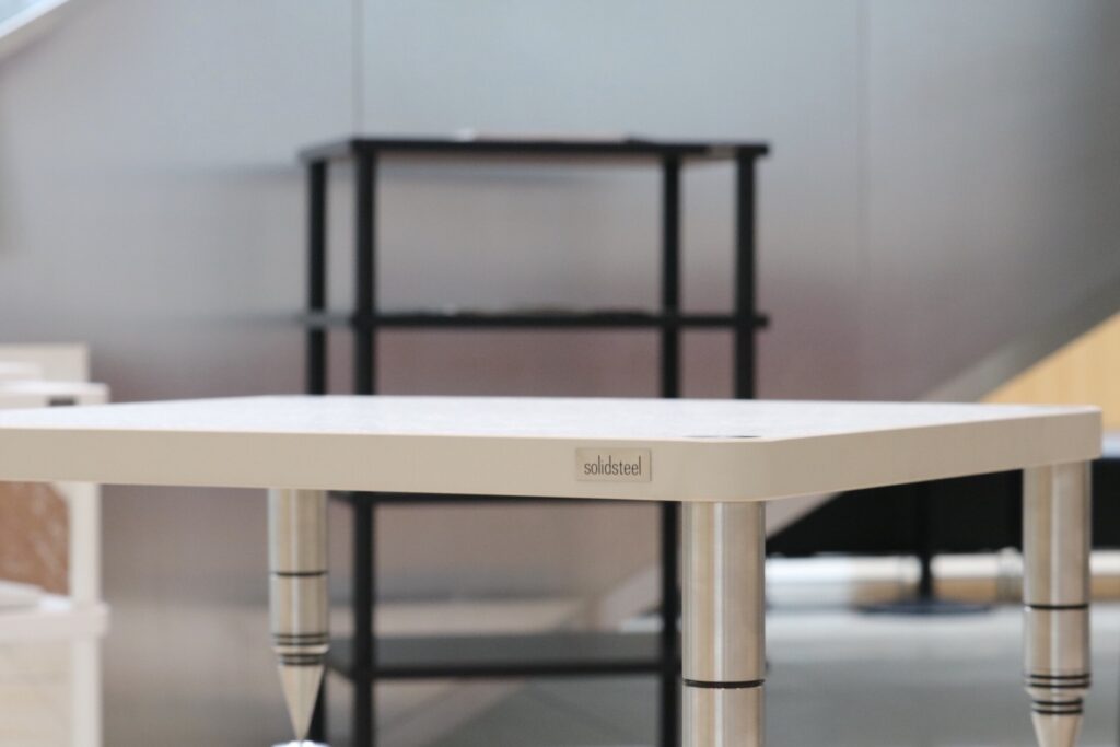 I Solidsteel NS-10 sono costituiti da 5 tubi in acciaio verniciati di colore nero, avvitati ad una piastra superiore in legno di 160×160 mm e ad una robusta piastra inferiore in acciaio inox, lavorata a laser. Tramite l’apposita filettatura i coni metallici inferiori possono essere equipaggiati con le famosissime punte regolabili in acciaio inossidabile di Solidsteel. Vi ricordiamo che queste punte sono regolabili in altezza e che nel corso degli anni hanno avuto un grande riscontro di pubblico da parte degli appassionati di tutto il mondo.