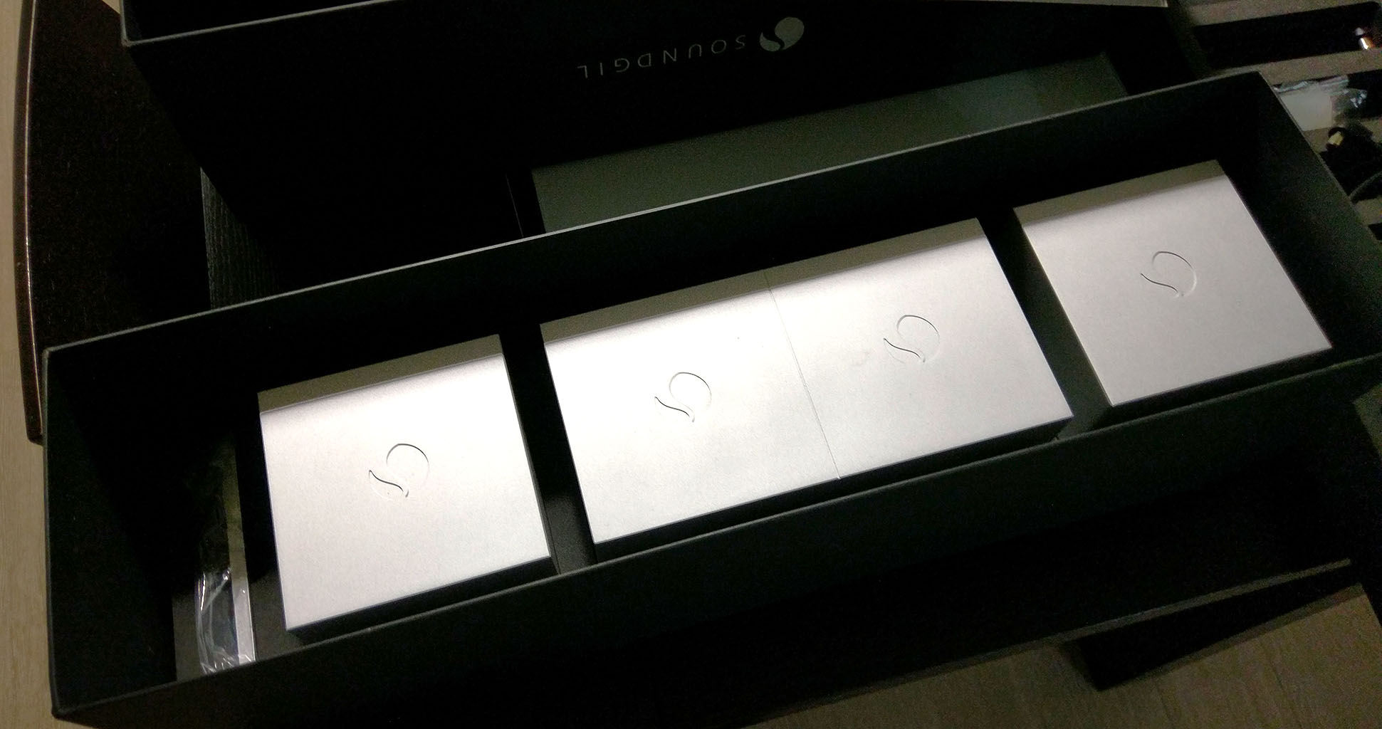 Le Soundgil sono abbastanza blindate da far passare ogni voglia di ispezione interna, ma la logica fa pensare che l’elettronica sia racchiusa tutta nel diffusore centrale, secondo le specifiche dichiarate dal costruttore la dotazione comprende quattro amplificatori da 50W e un DSP 32bit/384K indispensabile ormai in questo tipo di sistemi per ricreare un suono credibile degno di essere HiFi.