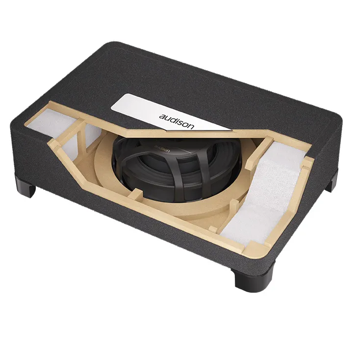 I box AVBX si distinguono per il design sigillato ultra-sottile, pensato per installazioni in spazi ridotti — sotto i sedili, negli angoli del bagagliaio o in configurazioni personalizzate — senza sacrificare l’impatto, la dinamica e la discesa della gamma bassa. Progettati con un processo di modellazione FEM iterativa, sono acusticamente ottimizzati per esaltare la risposta naturale dei subwoofer Audison VOCE II, migliorando punch, chiarezza e articolazione.