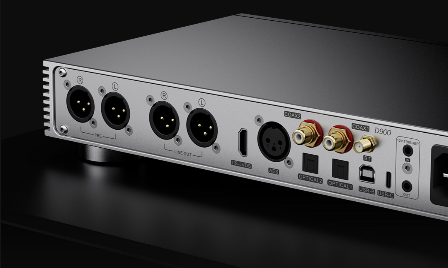 Il D900 supporta inoltre un’ampia gamma di ingressi tra IIS, coassiale, ottico, USB-C, USB-B e connettività Bluetooth 5.1 con supporto per i codec aptX HD, aptX Adaptive e LDAC. È compatibile con PC, laptop, lettori CD, console da gioco e streamer e integra anche un circuito preamp indipendente con memoria di volume per ogni ingresso e uscita, permettendo una regolazione precisa del volume con step da 0,5 dB.