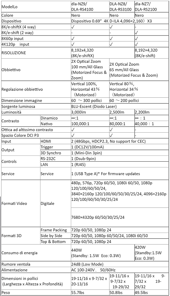 E ora veniamo alle dolenti note, ovvero i prezzi. In Italia il DLA-NZ7 costerà 9.999 euro, mentre ci vorranno 14.999 euro per il DLA-NZ8 e ben 24.999 euro per il DLA-NZ9.