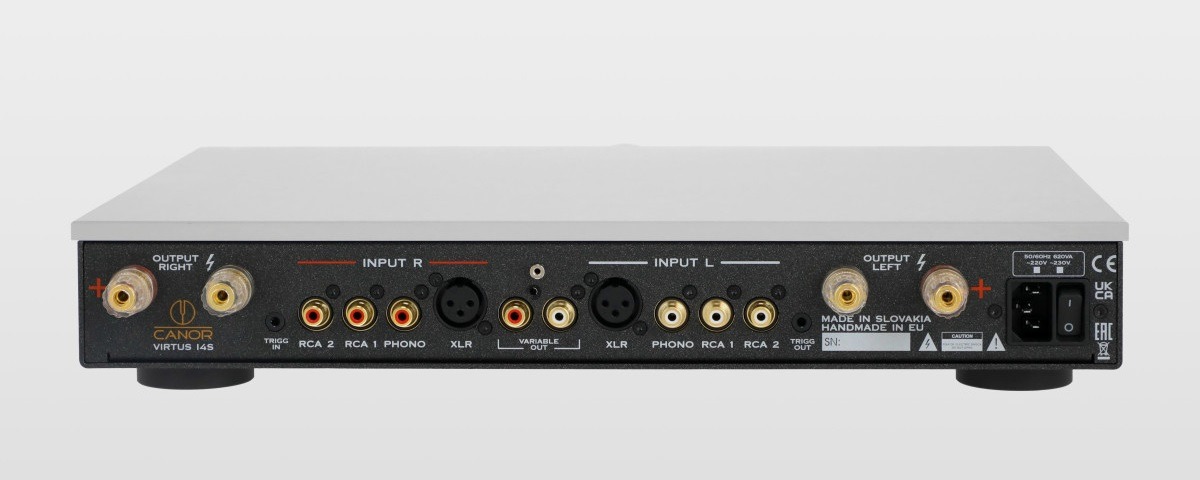 Per questo integrato, Canor ha scelto una soluzione originale optando per un display touch circolare integrato nella manopola centrale, mentre la gestione termica è affidata a dissipatori sviluppati appositamente con tecnologia a heat pipe. Per quanto riguarda le connessioni, troviamo due ingressi RCA, un ingresso XLR bilanciato e un ingresso RCA phono. Un’uscita RCA variabile facilita l’integrazione di un subwoofer o di un amplificatore di potenza esterno, mentre sulla parte anteriore spicca un uscita cuffie da 6,35 mm.