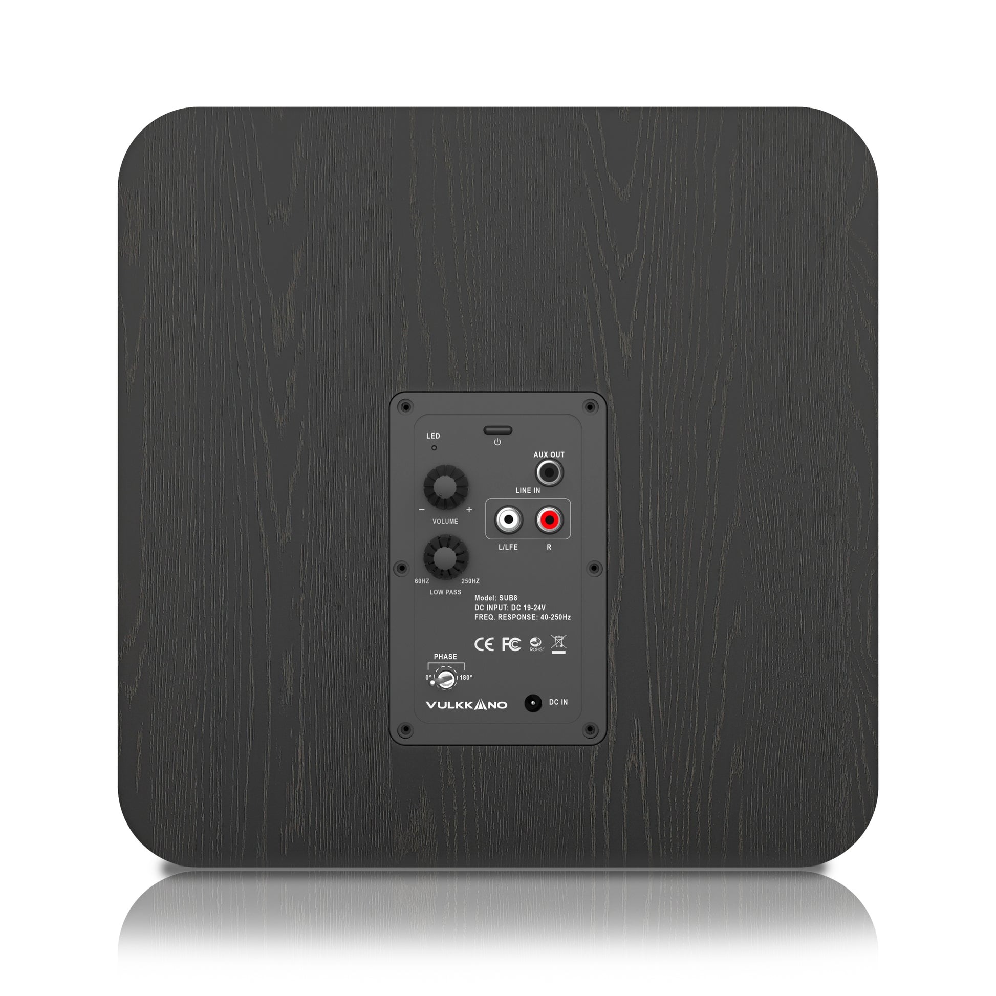 Disponibile in un’unica finitura nera, il Vulkkano SUB8 ha una risposta in frequenza di 40Hz-250Hz, dimensioni particolarmente compatte (28 x 28 x 31,5 cm) e un peso di poco superiore ai 5 KG. Un modello insomma poco impegnativo anche grazie alla porta laterale, che rispetto a un più tradizionale collocata sul retro facilita il posizionamento del subwoofer nell’ambiente di ascolto.